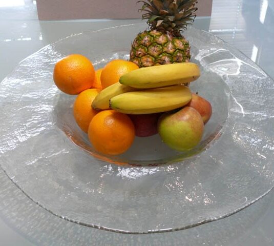 LARGE MODERN GLASS BOWL WITH WAVE RIM VENETIAN 52 CM DIAM.