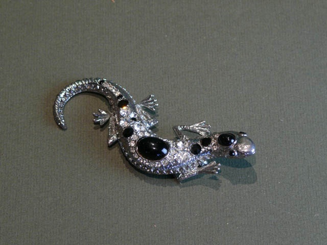 LARGE MODERN METAL LIZARD WITH BLACK AND PASTE DECORATION
