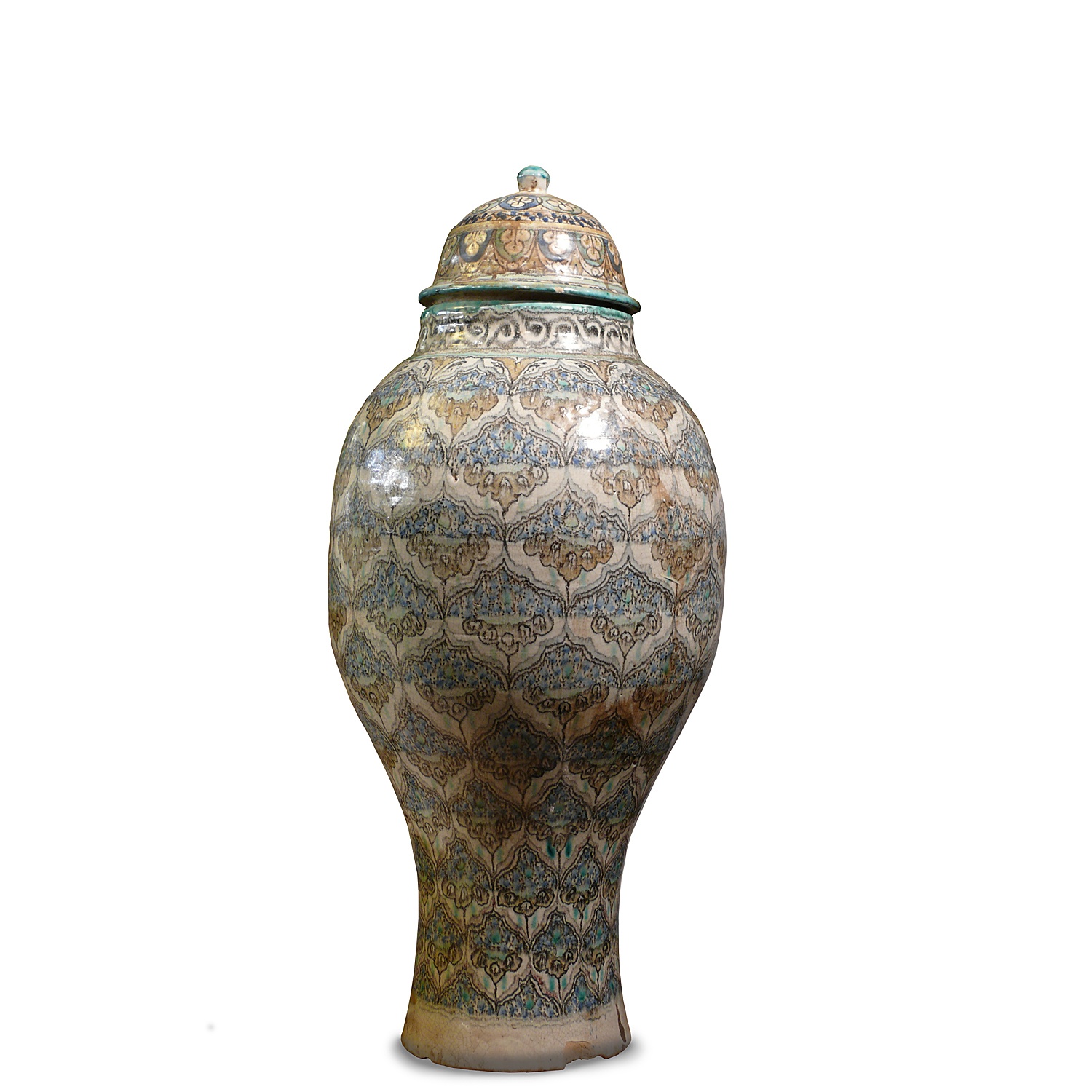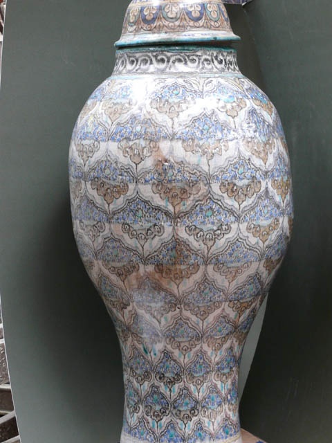 LARGE MOROCCAN VASE WITH LID FADED GREY BLUE PATTERN 83 CM HIGH