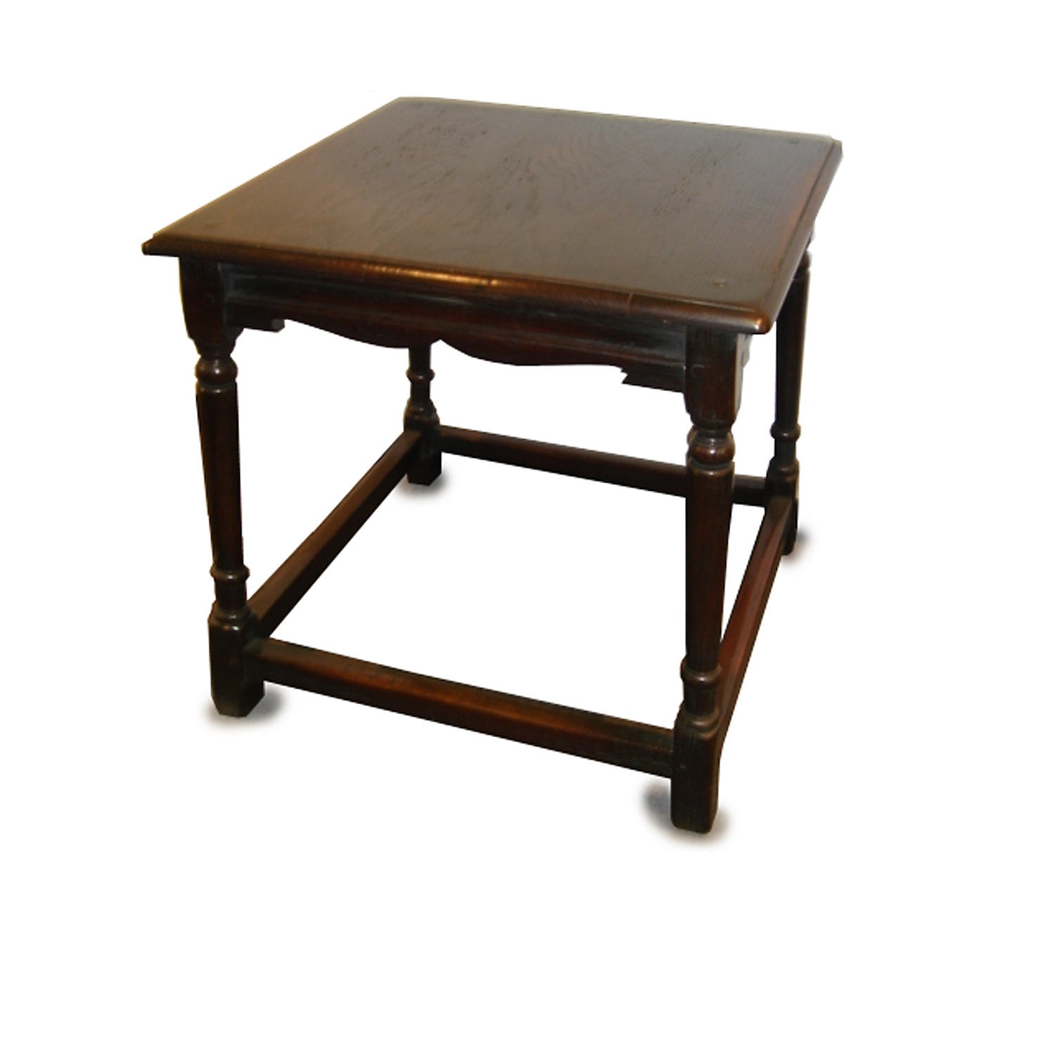 LARGE OAK JOINT STOOL / OCCASIONAL TABLE WITH SPLAYED TURNED LEGS