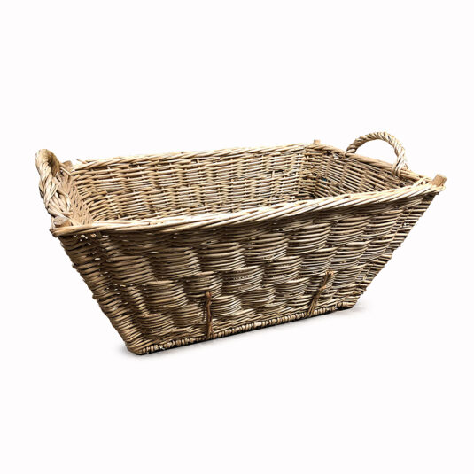 LARGE OBLONG CANE LOG BASKET WITH RAKED SIDES