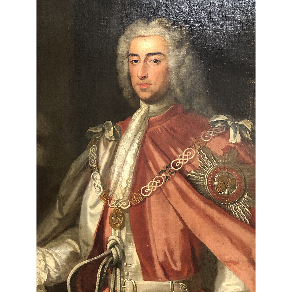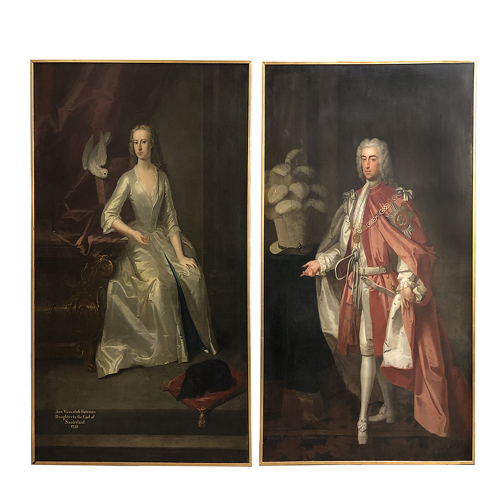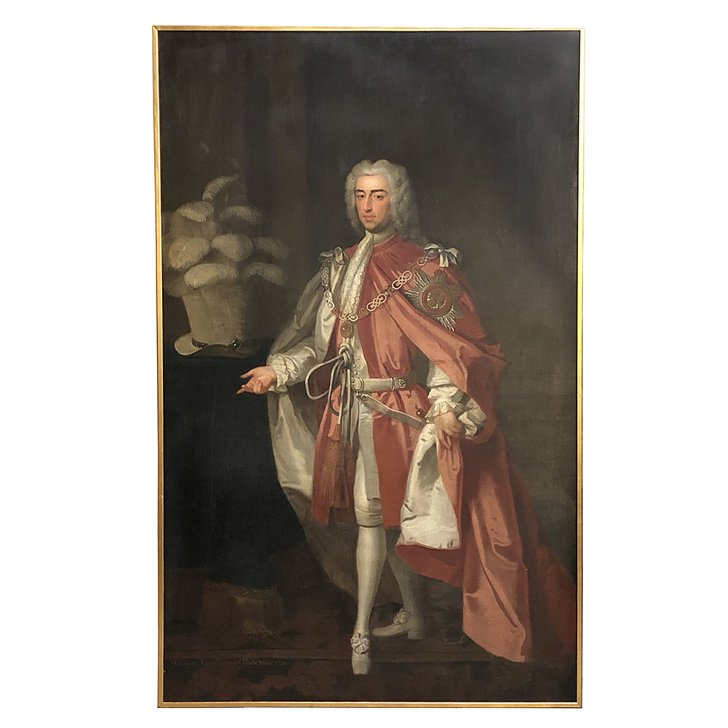 LARGE OIL PAINTING FULL LENGTH PORTRAIT OF WILLIAM LORD VISCOUNT BATEMAN ENOCH SEEMAN (1694-1745) DATED 1730 94 INCHES X 58 INCHES IN A HEAVY OAK OR THIN GILT FRAME (ONE OF A PAIR)