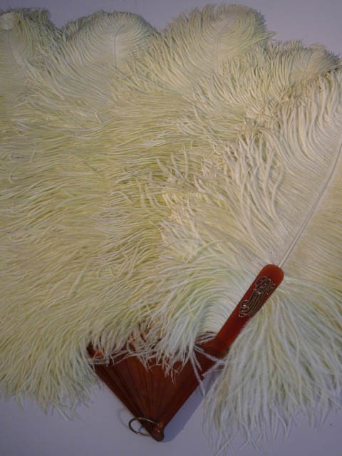 LARGE OSTRICH FEATHER FAN WITH MONOGRAMED TOROISESHELL HANDLE