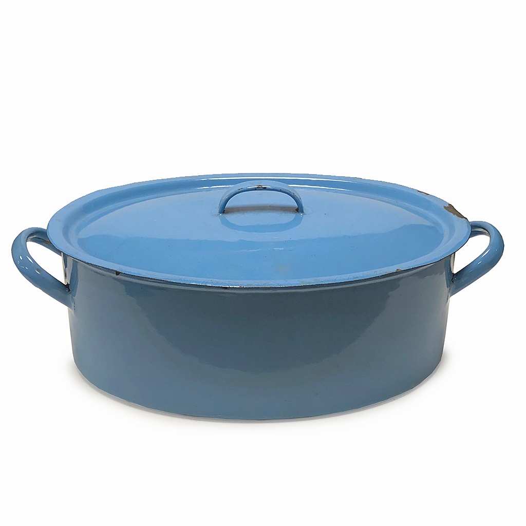 LARGE OVAL BLUE ENAMEL SAUCEPAN AND LID 43 CM WIDE