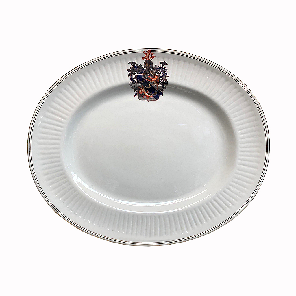 LARGE OVAL CHINESE EXPORT OVAL CREAM PLATTER WITH NAVY HERALDIC CREST