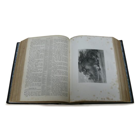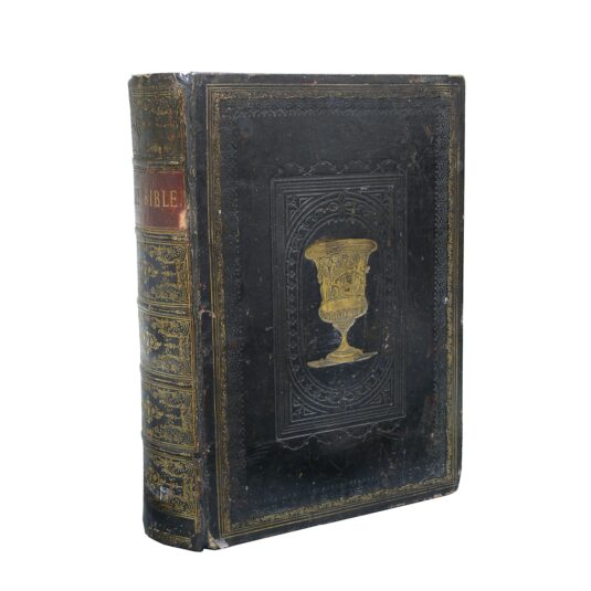 LARGE PERIOD FAMILY BIBLE BOOK TOOLED LEATHER BOUND COMPLETE WITH ILLUSTRATED PLATES 38 CM HIGH 29 CM WIDE