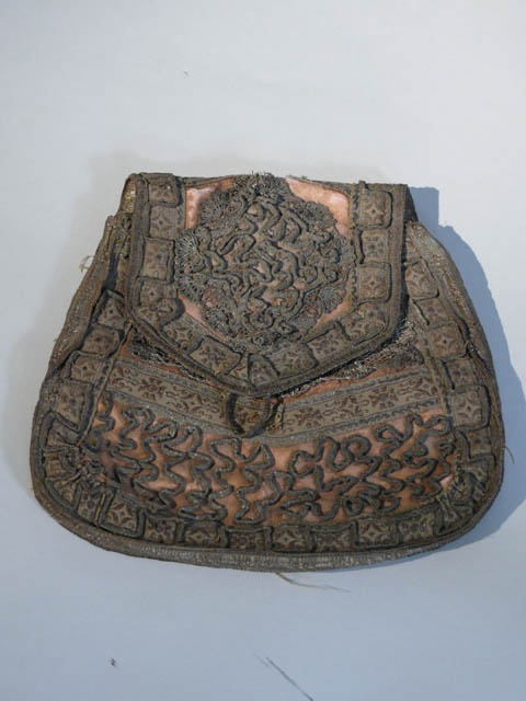 LARGE PINK DAMASK HANDBAG WITH BRAIDED EDGE AND RAISED METAL THREADWORK