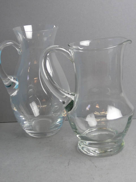 LARGE PLAIN GLASS JUG 23 CM - 25 CM (X2)
