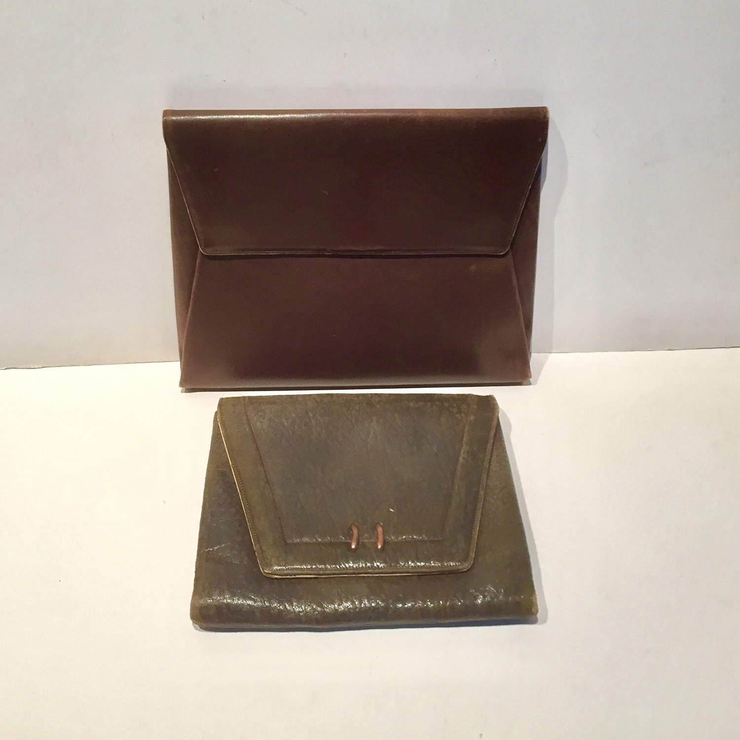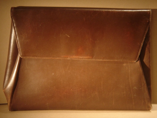 LARGE PLAIN TAN LEATHER ENVELOPE STYLE CLUTCH HANDBAG AS LISTED