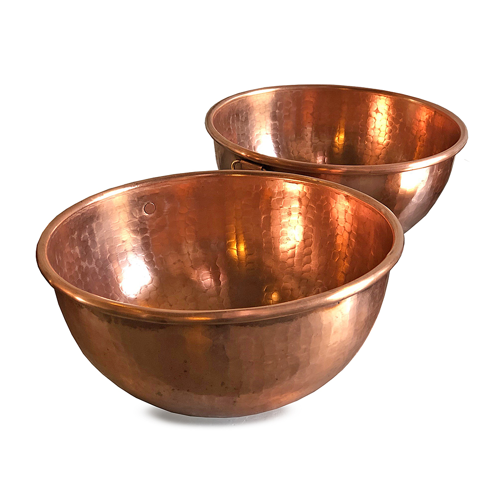 LARGE POLISHED COPPER SUGAR MIXING BOWL L JAEGGI AND SONS 38 CM DIAM (X2)