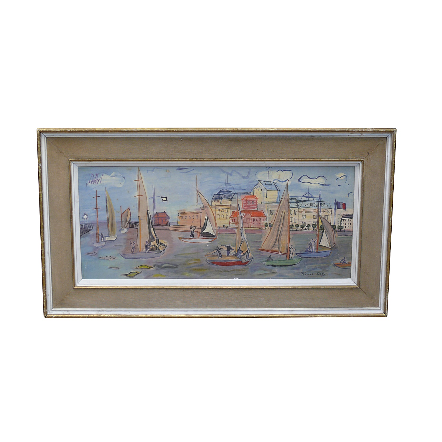 LARGE PRINT ON BOARD RAOUL DUFY LES REGATES DEAUVILLE IN A WHITE FRAME 12/i X 27/i