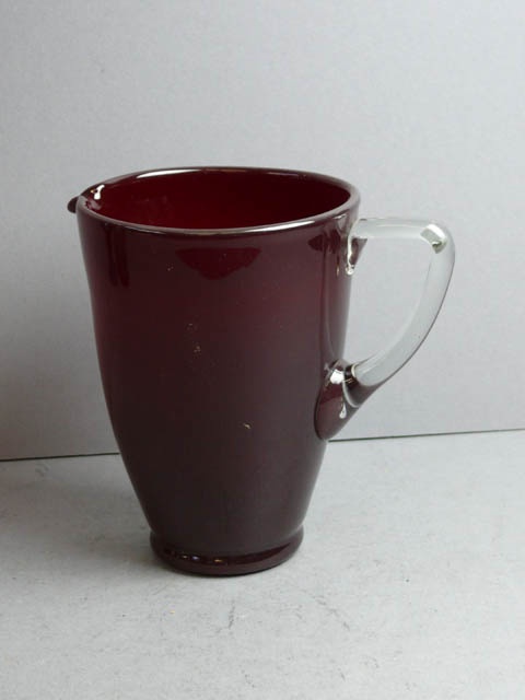LARGE RUBY / CRANBERRY GLASS WATER JUG 19 CM