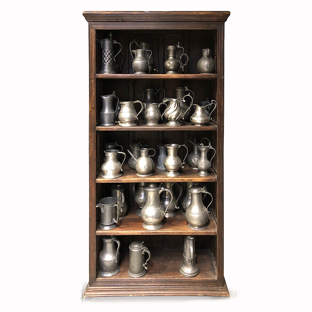 LARGE RUSTIC DARK WOOD OPEN SHELVES WITH TURNED SPINDLE ENDS 183 CM HIGH 90 CM WIDE 38 CM DEEP (X2)