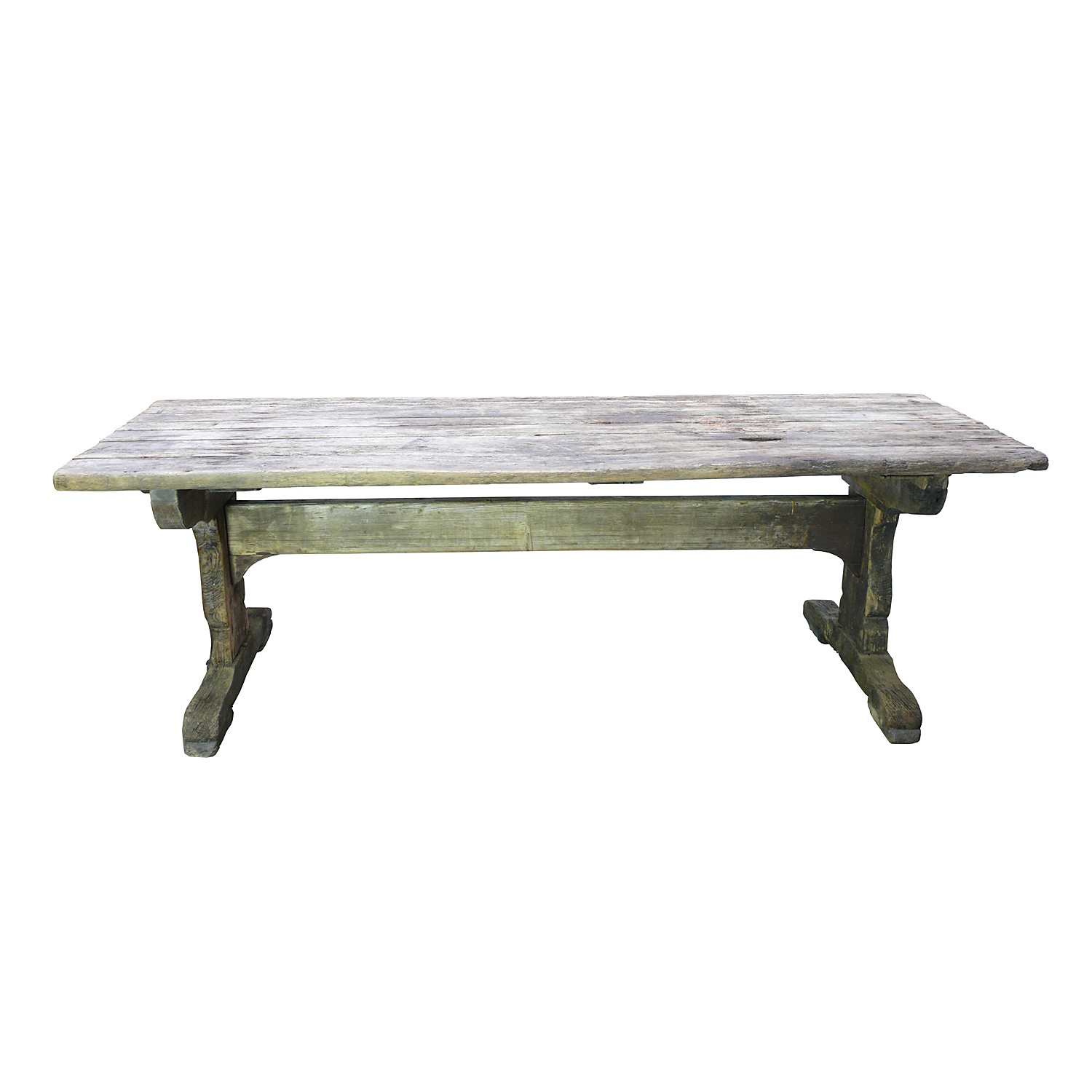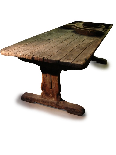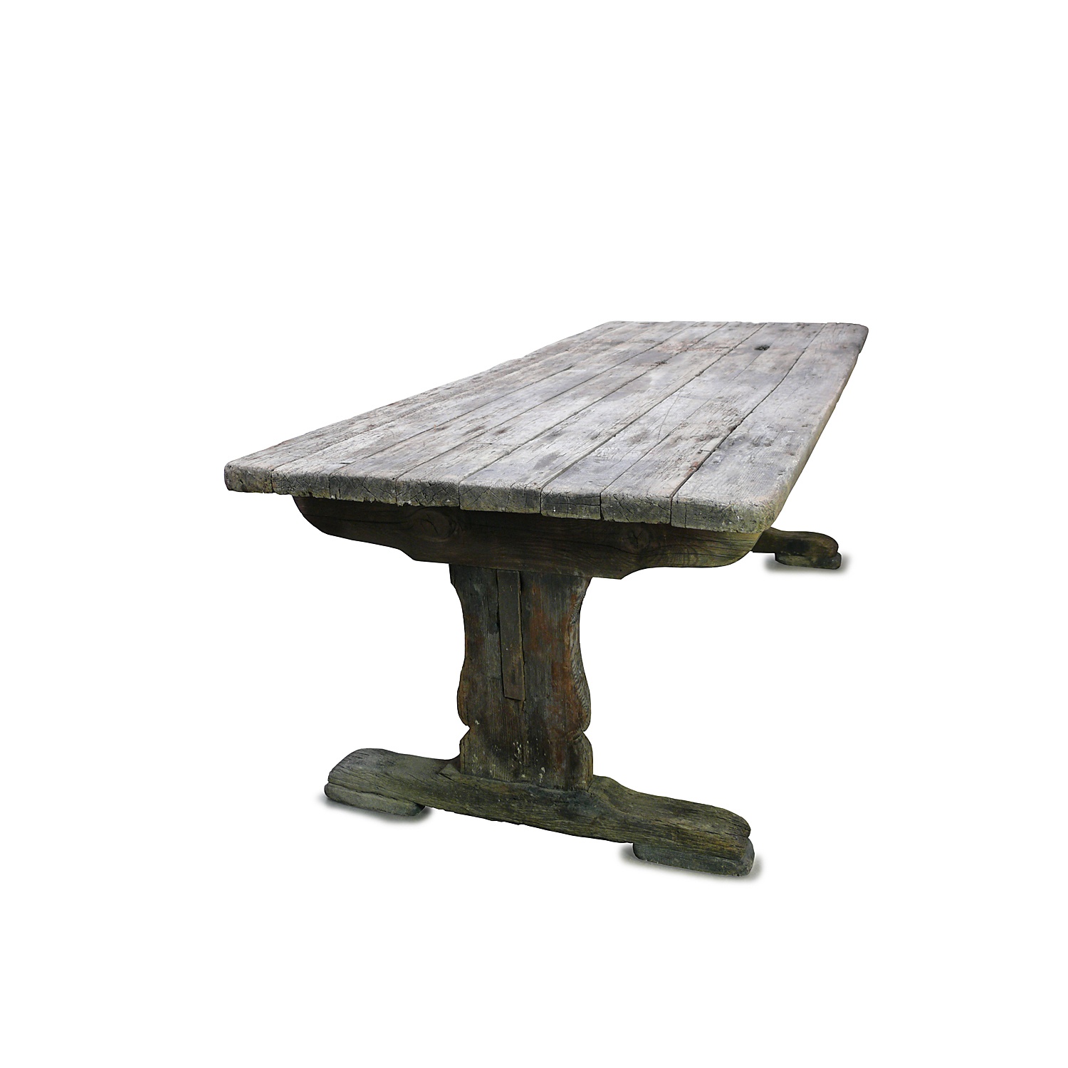 LARGE RUSTIC PINE KITCHEN TABLE "T" LEG WITH THICK TOP 234 CM LONG 89 CM WIDE 76 CM HIGH