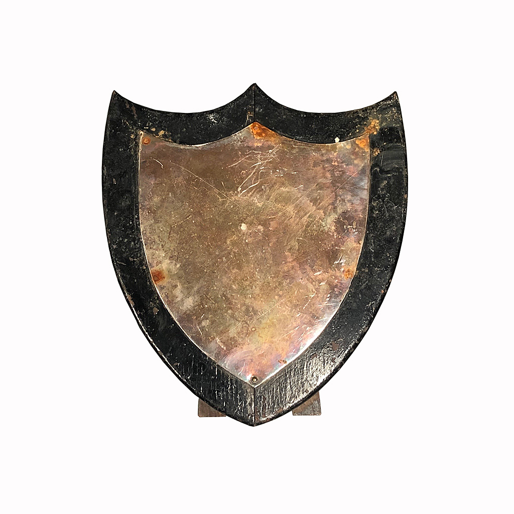 LARGE SHEFFIELD SILVER SHIELD TROPHY ON EBONISED OAK BACK BOARD (BLANK) 33 CM HIGH