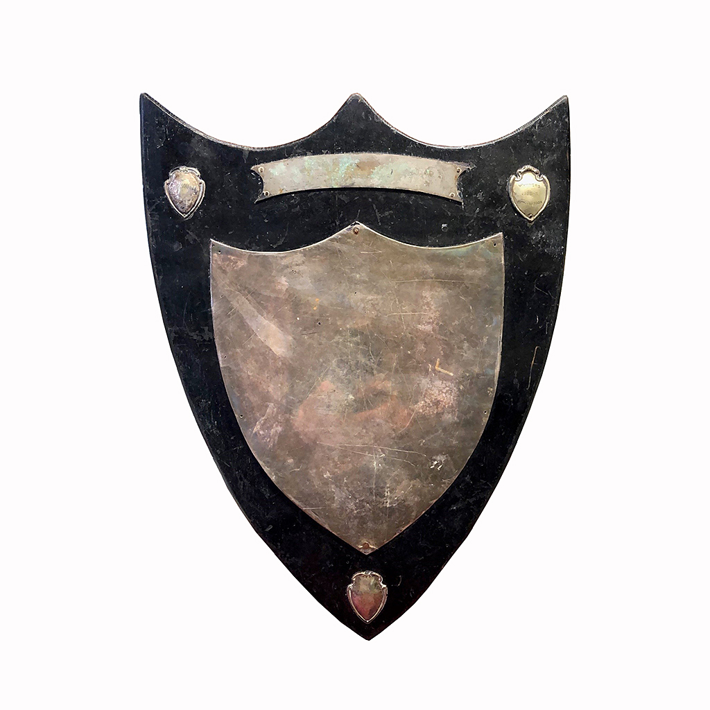 LARGE SHEFFIELD SILVER TROPHY SHIELD WITH EBONISED BACK BOARD 50 CM HIGH 40 CM WIDE