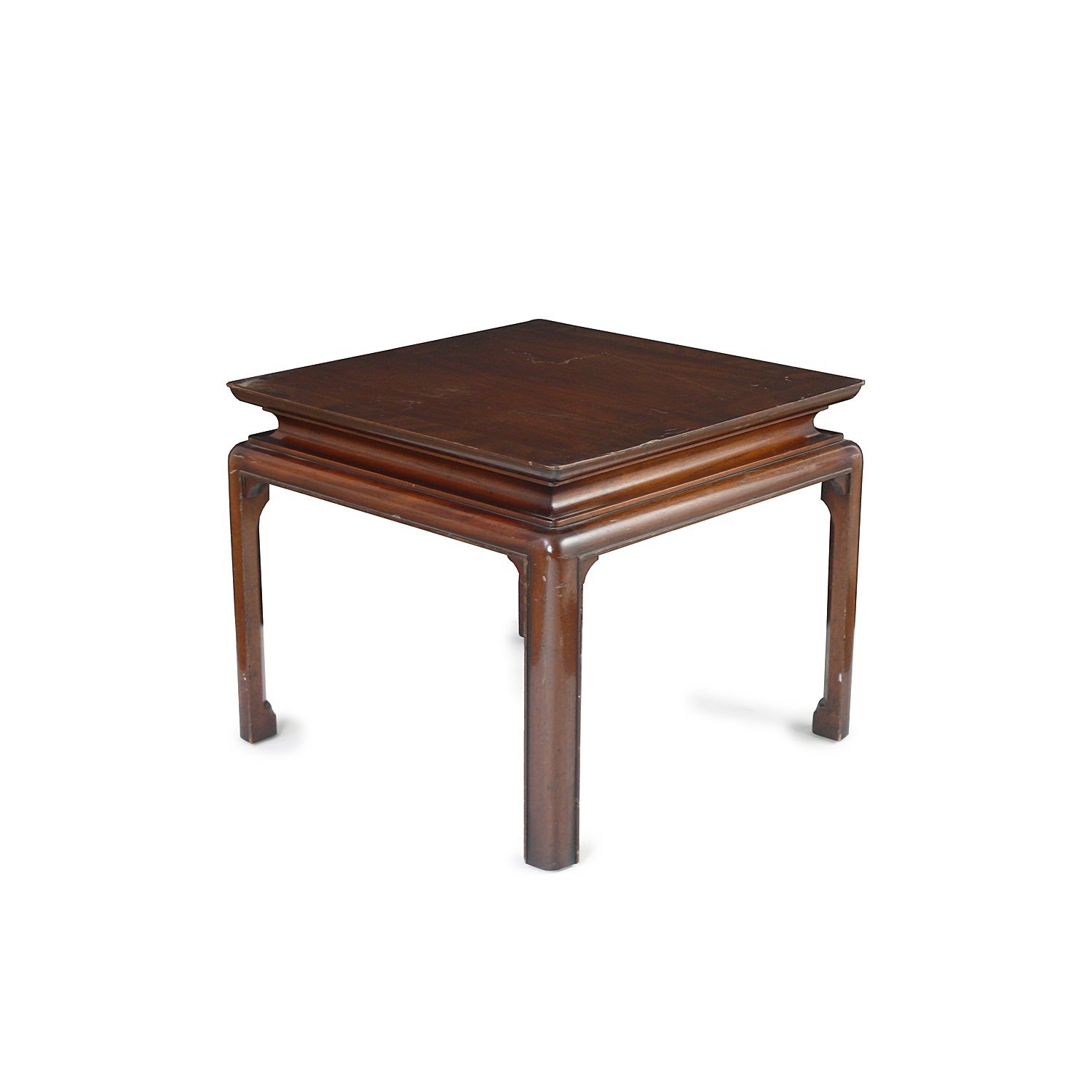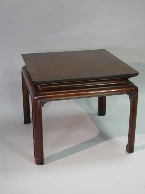 LARGE SQUARE CHINESE CHIPPENDALE LOW MAHOGANY OCCASIONAL TABLE 53 CM HIGH 62 CM WIDE 62 CM DEEP (X2)
