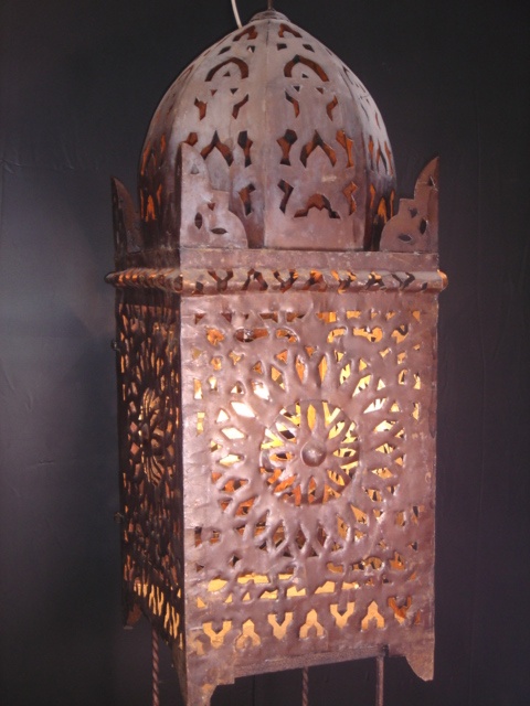 LARGE SQUARE FRETTED IRON TERRACE LANTERN 4' HIGH (X2)