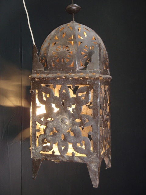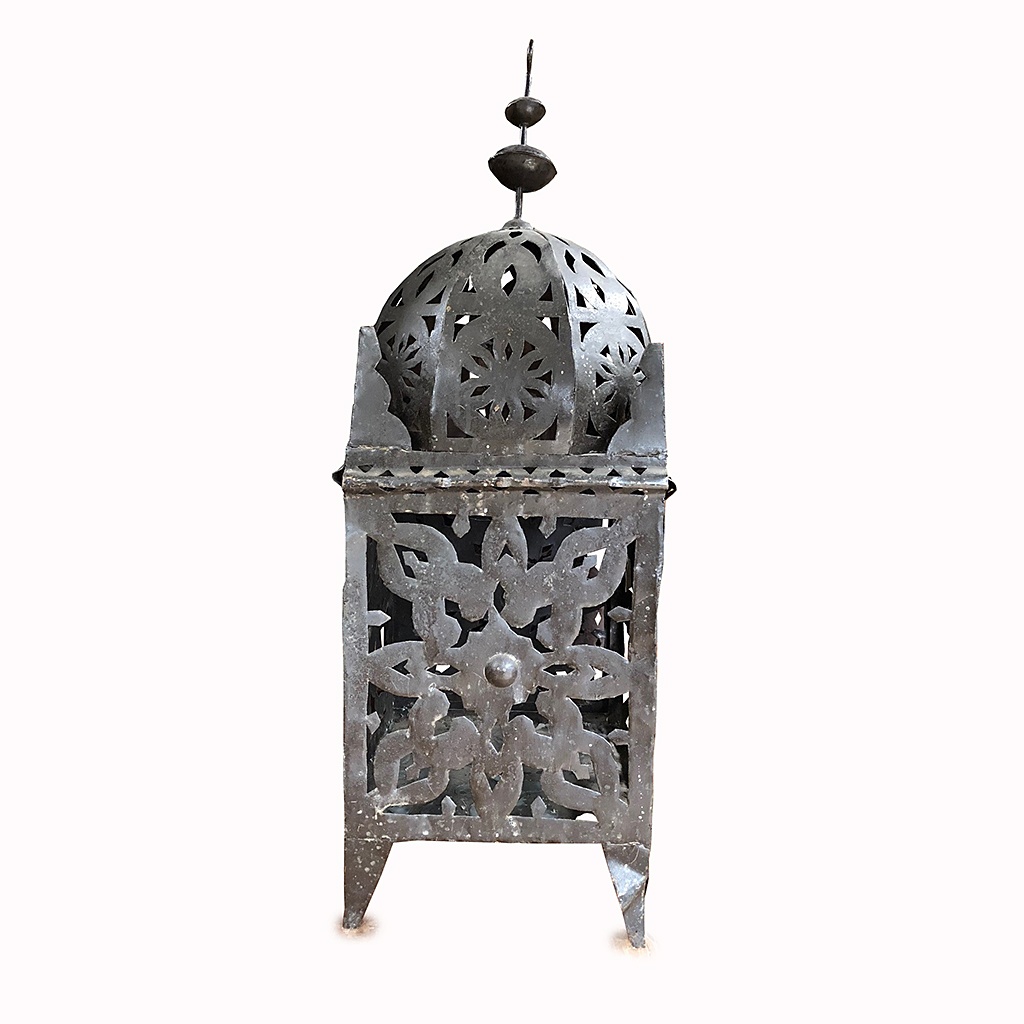 LARGE SQUARE MOROCCAN TERRACE LANTERN 2'11/i HIGH WITH FRET DOME TOP NO GLASS (X3)