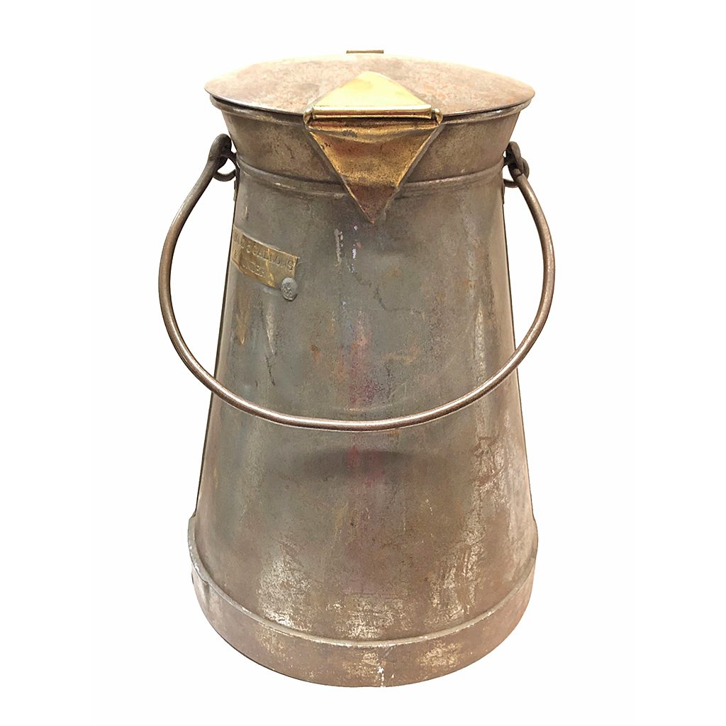 LARGE STEEL AND BRASS MILK CHURN LOOP HANDLE 5 GALLON 49 CM HIGH
