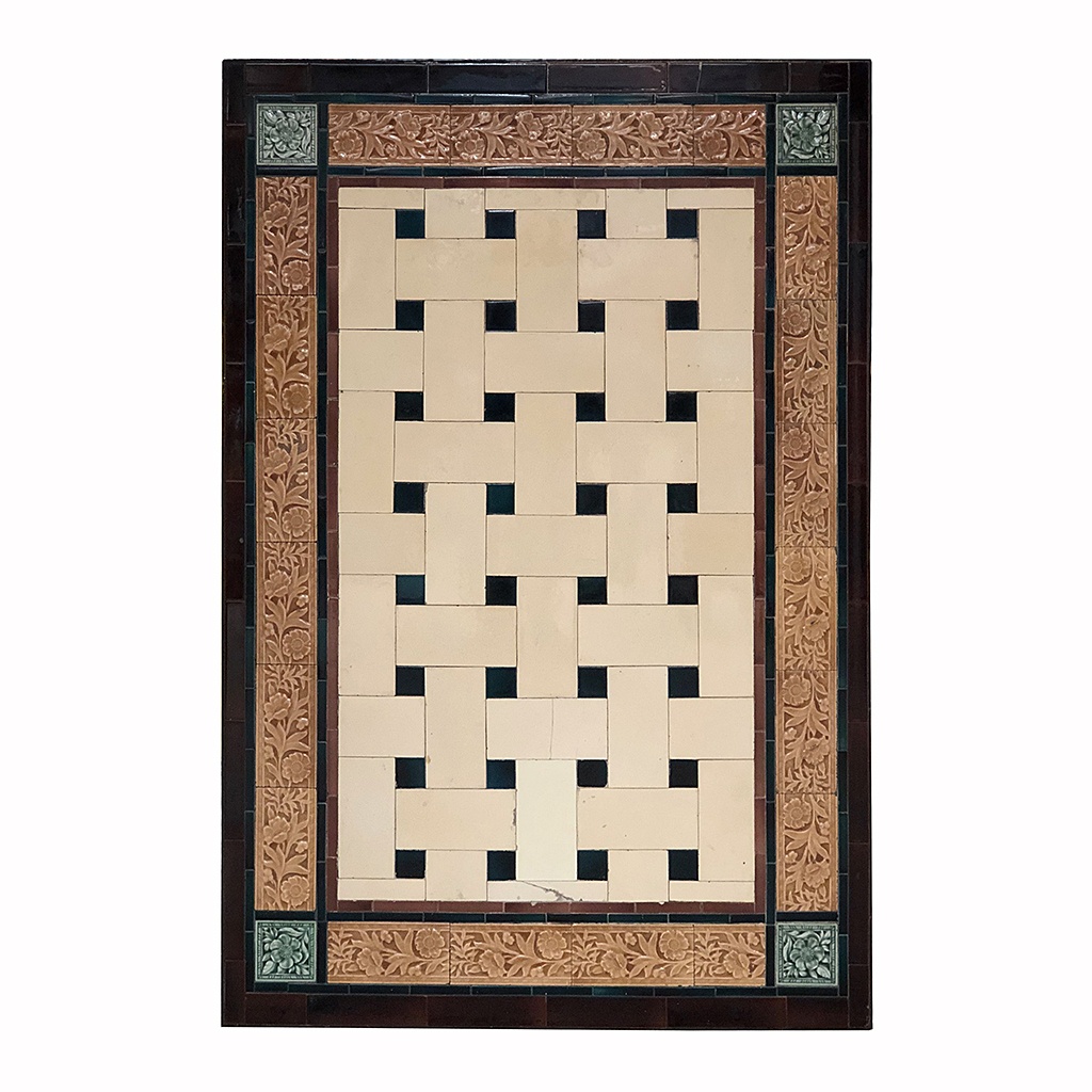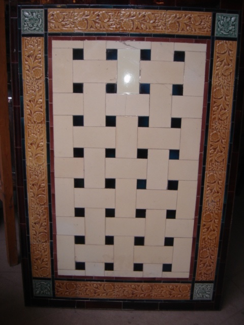 LARGE TILE TABLE TOP FROM MAYPOLE DAIRY WITH METAL EDGE