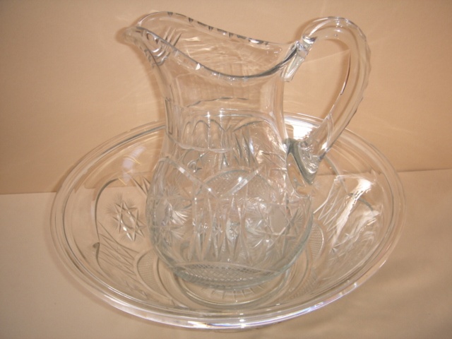LARGE VICTORIAN CUT GLASS WASH JUG AND BASIN