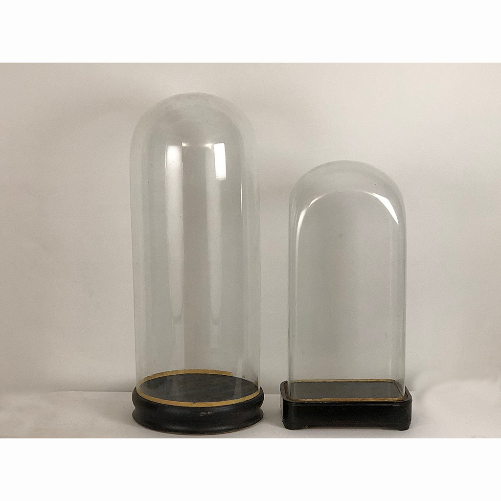 LARGE VICTORIAN TAXIDERMY GLASS DOME ON EBONY BASE AS SELECTED 60 CM - 74 CM HIGH (X4)