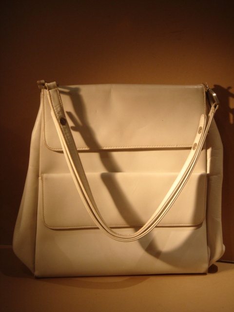 LARGE WHITE LEATHER HANDBAG 30 CM WIDE
