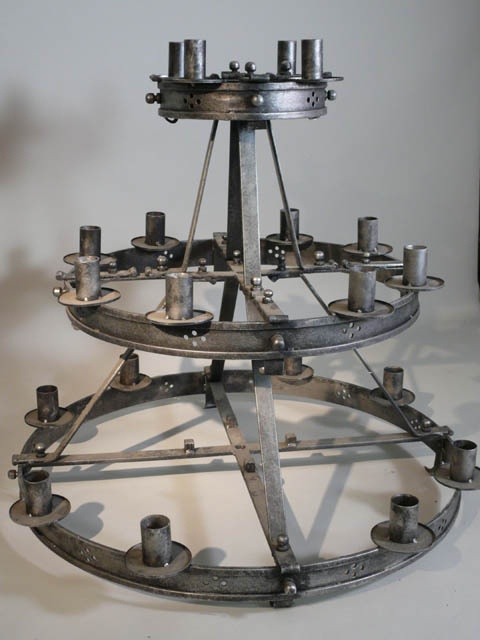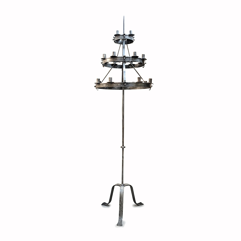 LARGE WROUGHT IRON CANDELABRA FLOOR STANDING THREE TIER 20 LIGHT 260 CM HIGH (X2)