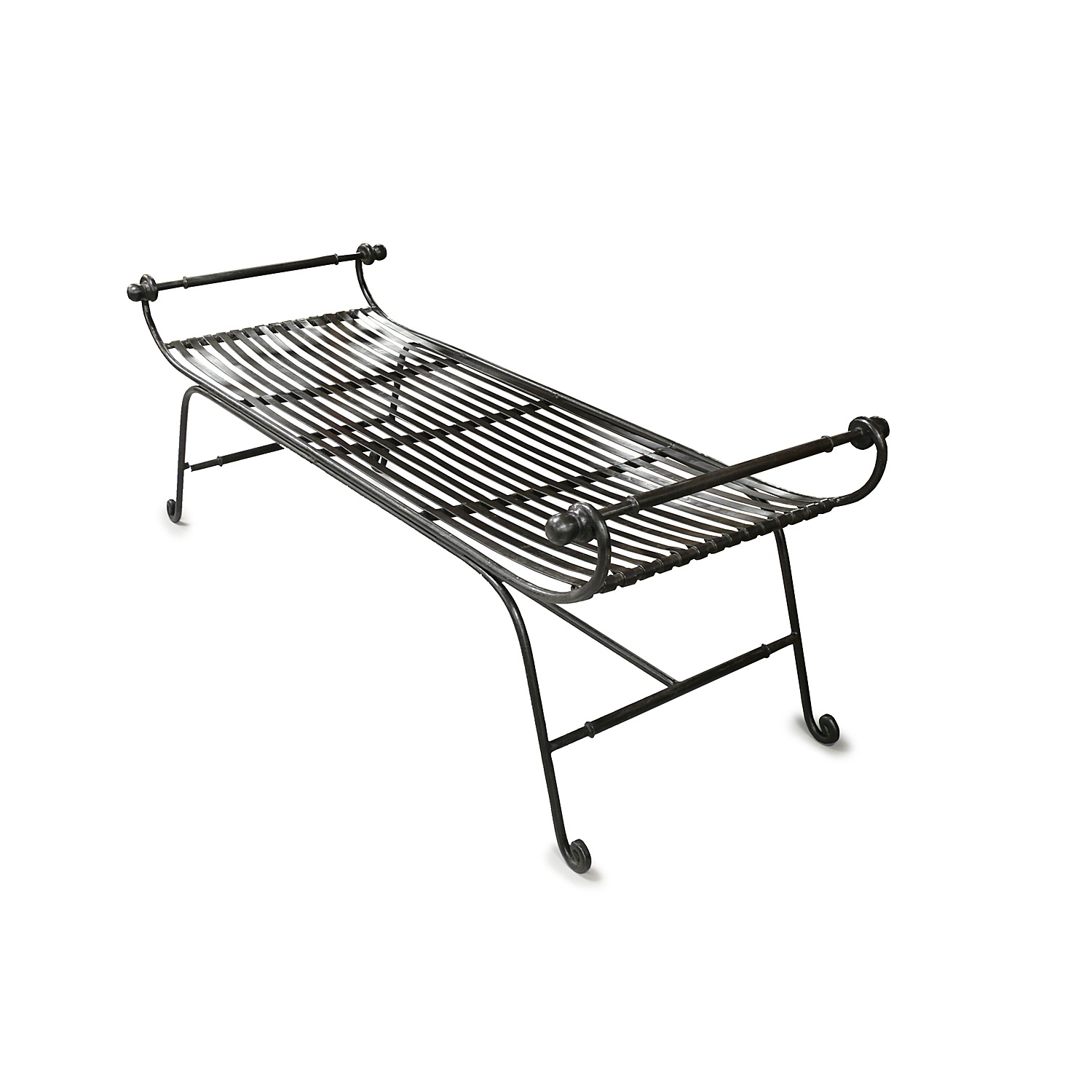 LARGE WROUGHT IRON FOLDING BENCH / STOOL 64 CM HIGH 175 CM WIDE 72 CM DEEP (X2)