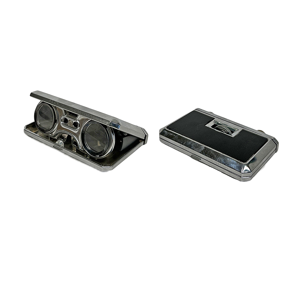 LATE FOLDING SPORTS / FIELD GLASSES BINOCULARS CHROME AND BLACK 11 CM WIDE / 6 CM DEEP