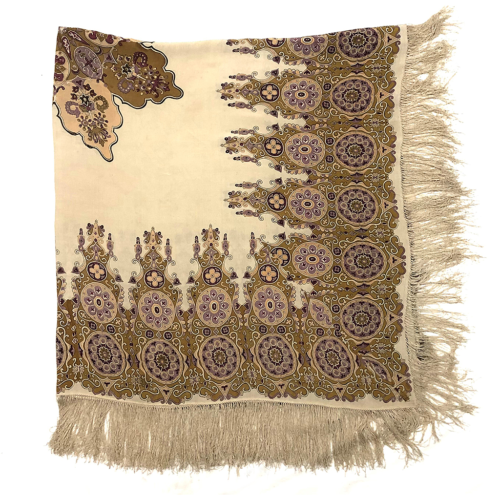 LATE PRINTED SILK SHAWL WITH LONG FRINGING CREAM WITH ORANGE PAISLEY 4'9'' X 4'6''