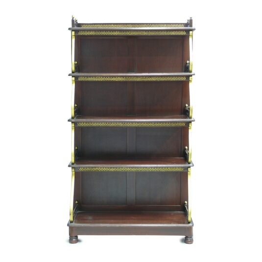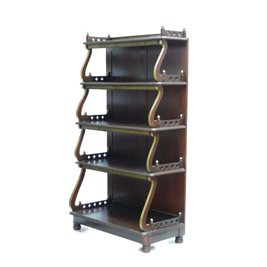 LATE REGENCY STYLE OPEN BOOKSHELVES 5'4/i HIGH 3' WIDE BLIND FRET GALLERY EDGED