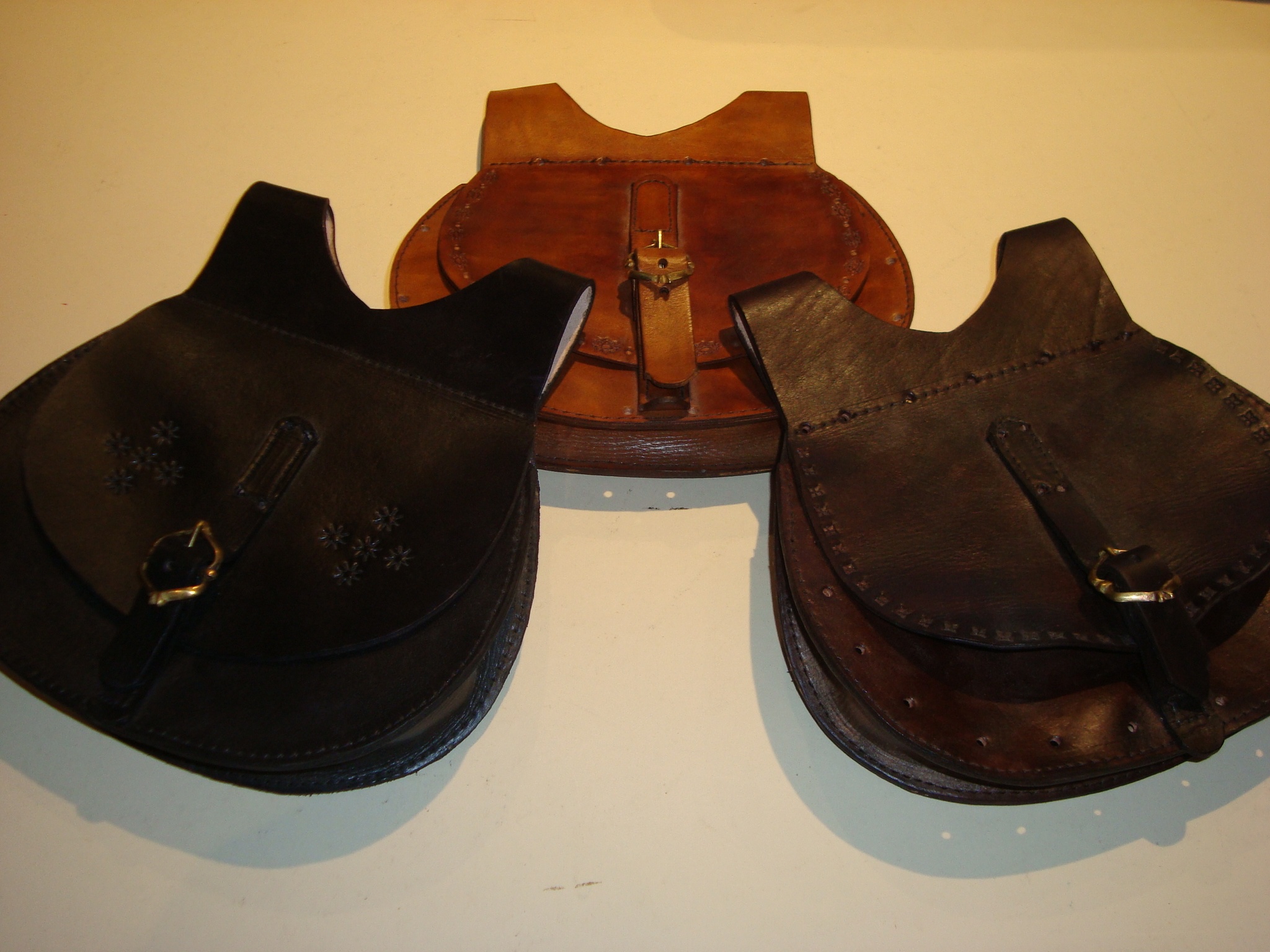 LEATHER MEDIEVAL STYLE POUCH BAG 'CIRCULAR' WITH SINGLE FLAP (X3) **COLOUR AS SELECTED**