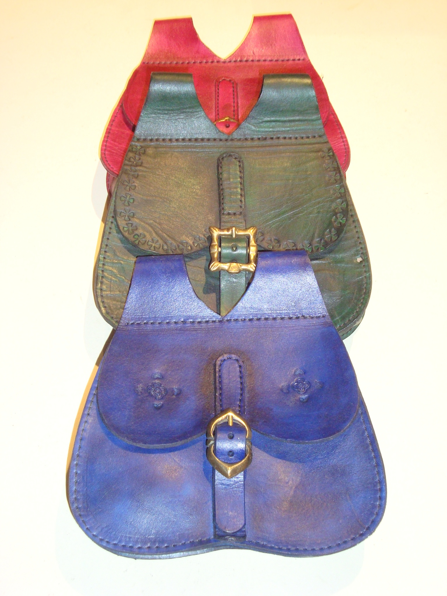 LEATHER MEDIEVAL STYLE POUCH BAG WITH EMBOSSED DETAIL (X3) **COLOUR AS SELECTED**