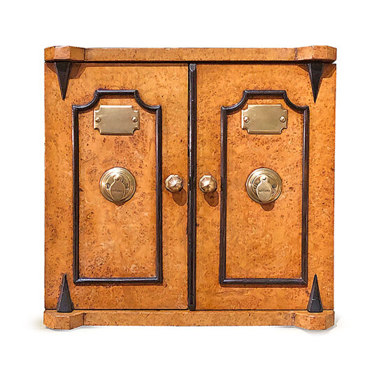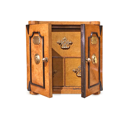 LIGHT MAPLE AND EBONY TANTALUS BOX IN FORM OF SAFE 24 CM HIGH 25 CM WIDE 17 CM DEEP
