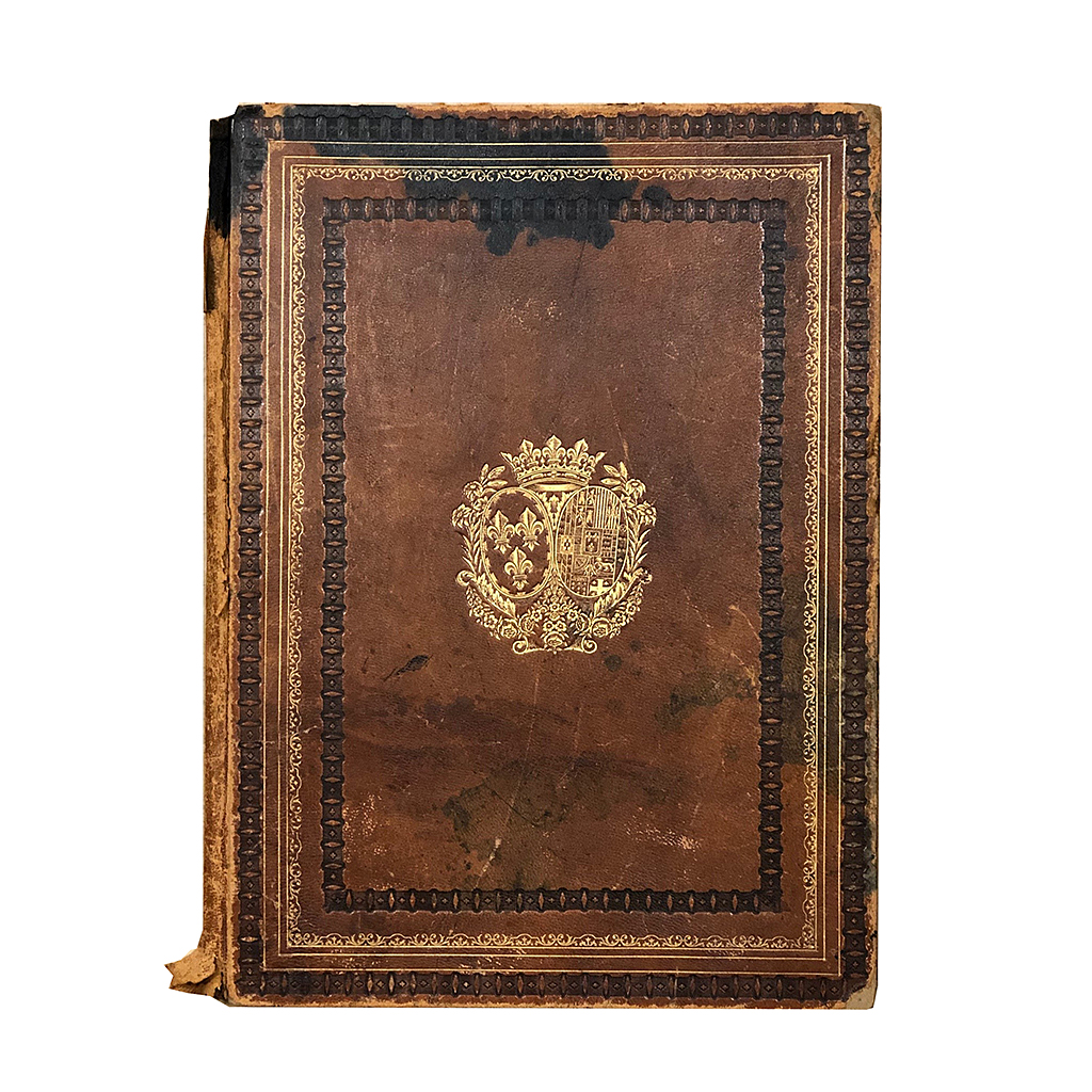 LIGHT TAN LEATHER BLOTTER WITH A FRENCH DUCAL CREST STAMPED LENOIR 14 RUE ROYALE