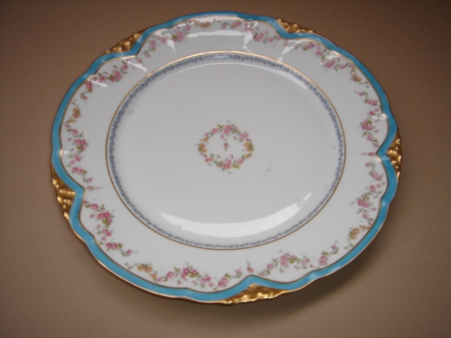 LIMOGES DINNER PLATE TURQUOISE BLUE EDGE