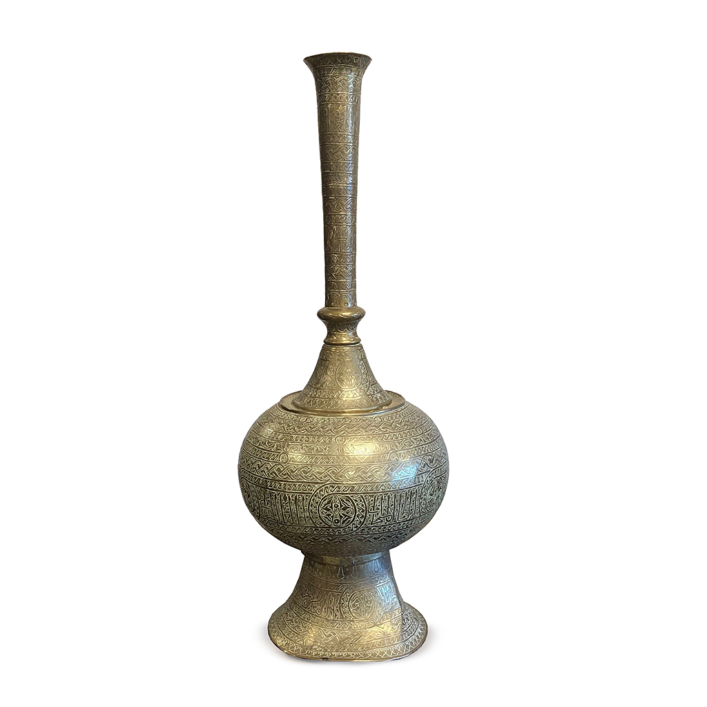 INDIAN ENGRAVED BRASS BOTTLE VASE WITH NARROW NECK 55 CM HIGH