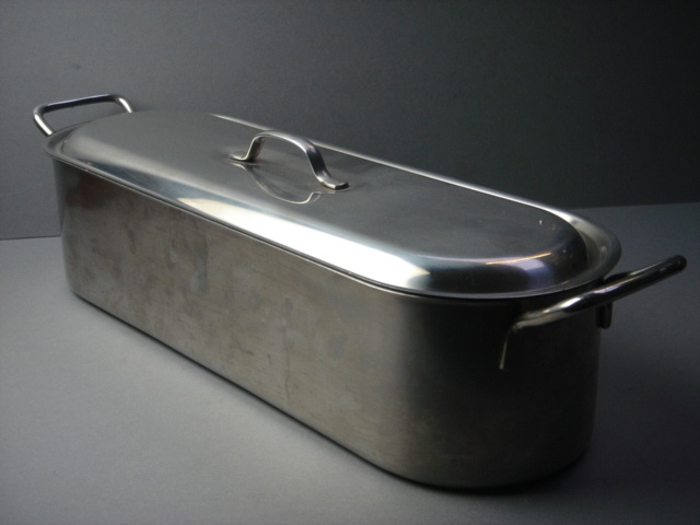 LONG ALLUMINIUM FISH KETTLE SAUCEPAN AND LID THREE PIECE 46 CM