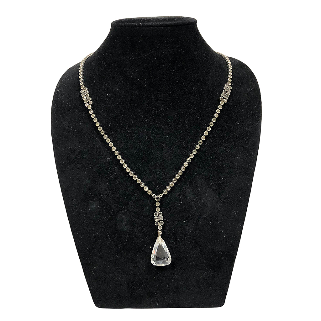 LONG ART DECO PENDANT NECKLACE WITH CENTRAL CLEAR CRYSTAL STONE