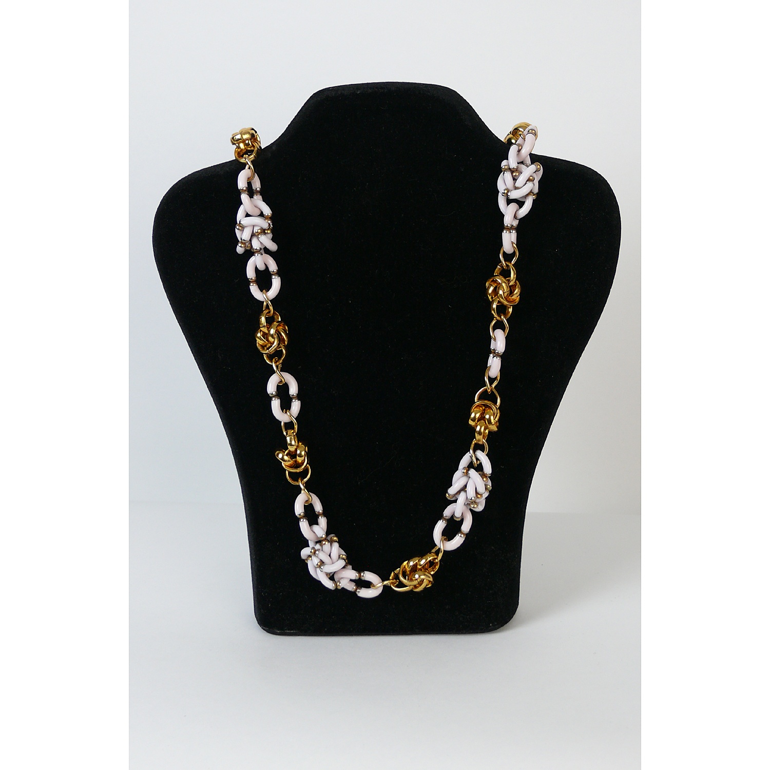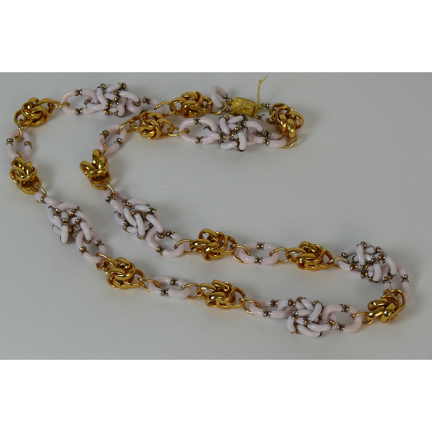 LONG GOLD AND PALE PINK GLASS KNOT NECKLACE BY ARCHEMIDE SEGUSO FOR CHANEL 1960'S