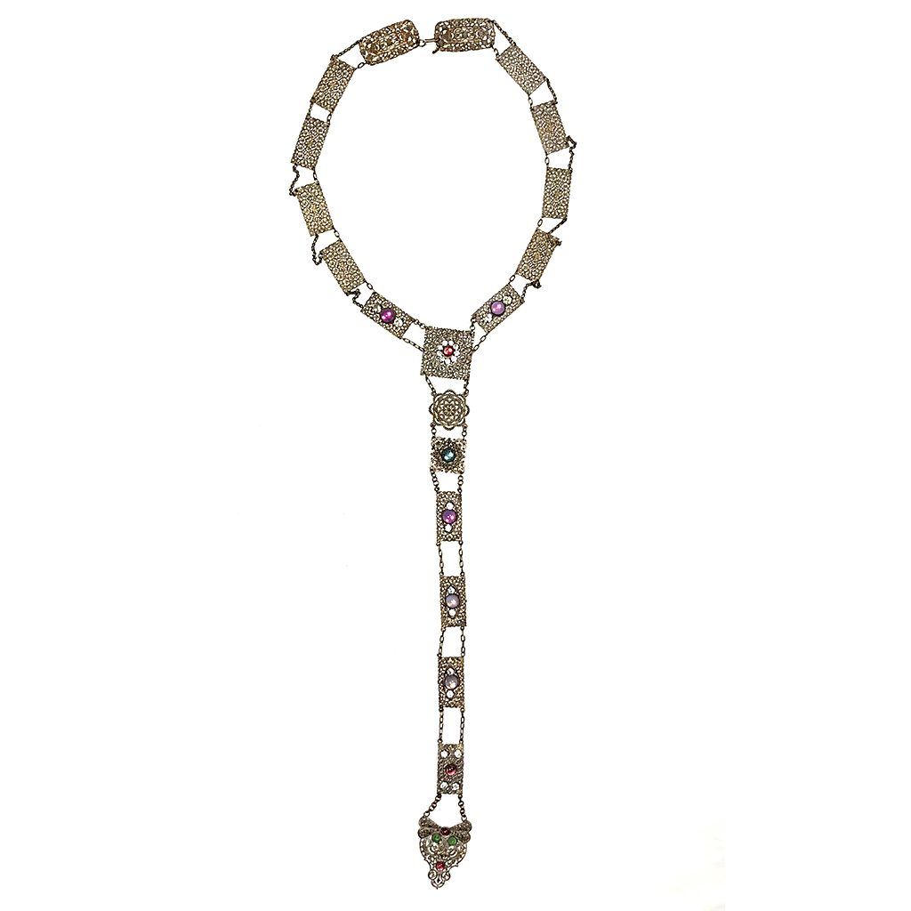 LONG MEDIEVAL GILT METAL BELT WITH MOON STONES