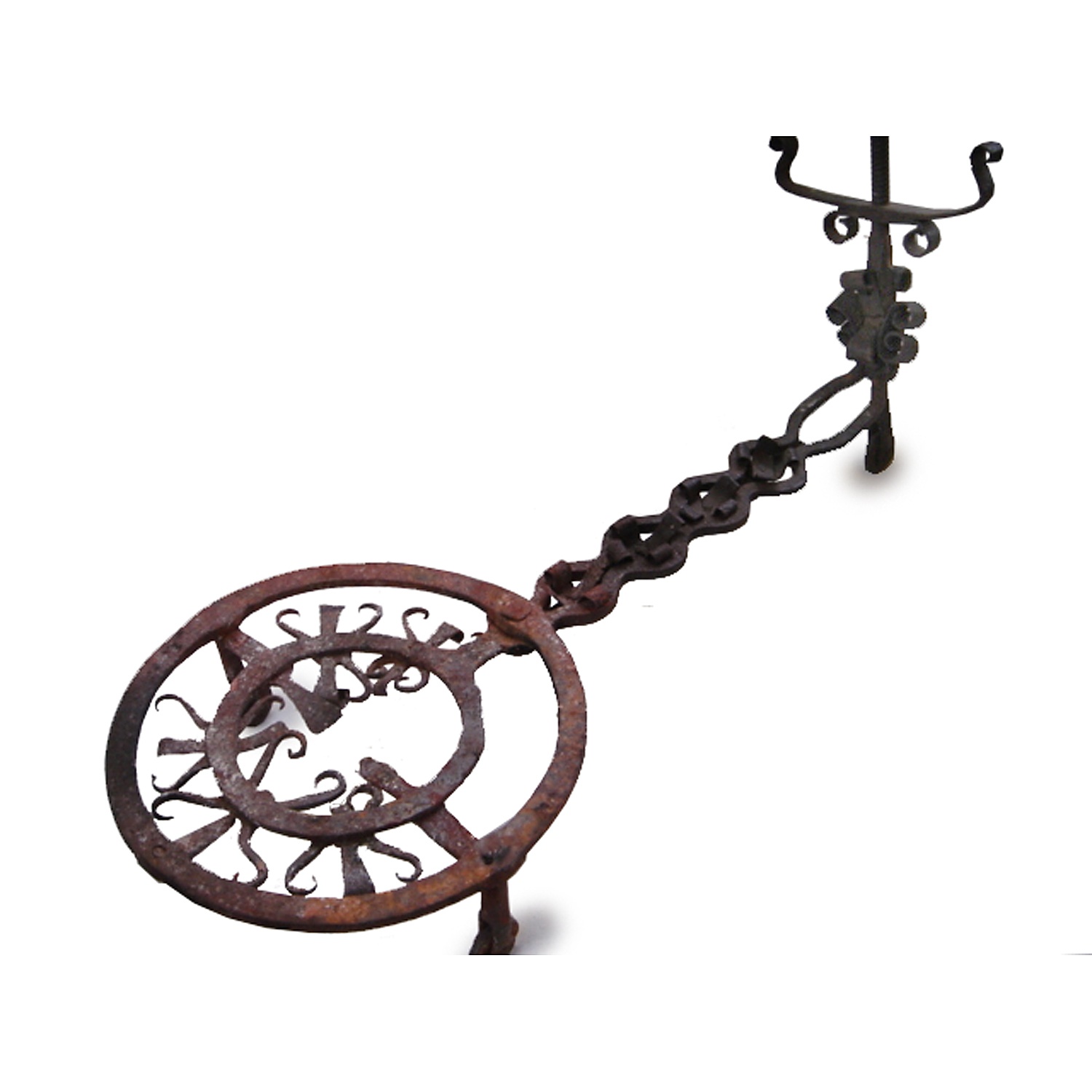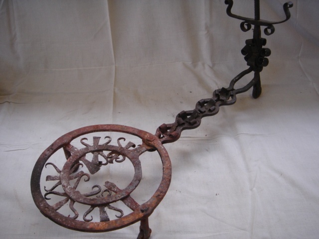 LONG ORNATE WROUGHT IRON TRIVET STAND