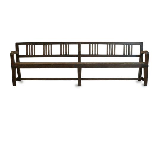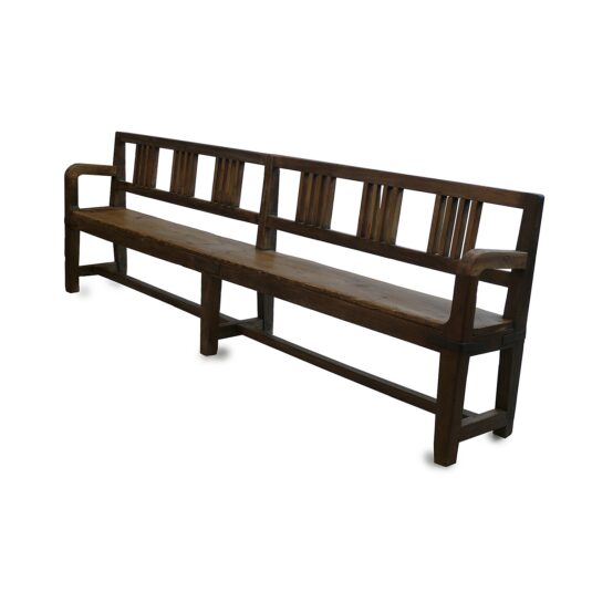 LONG WOODEN BENCH / SEAT WITH SLATTED BACK 75 CM HIGH 244 CM LONG (X2)