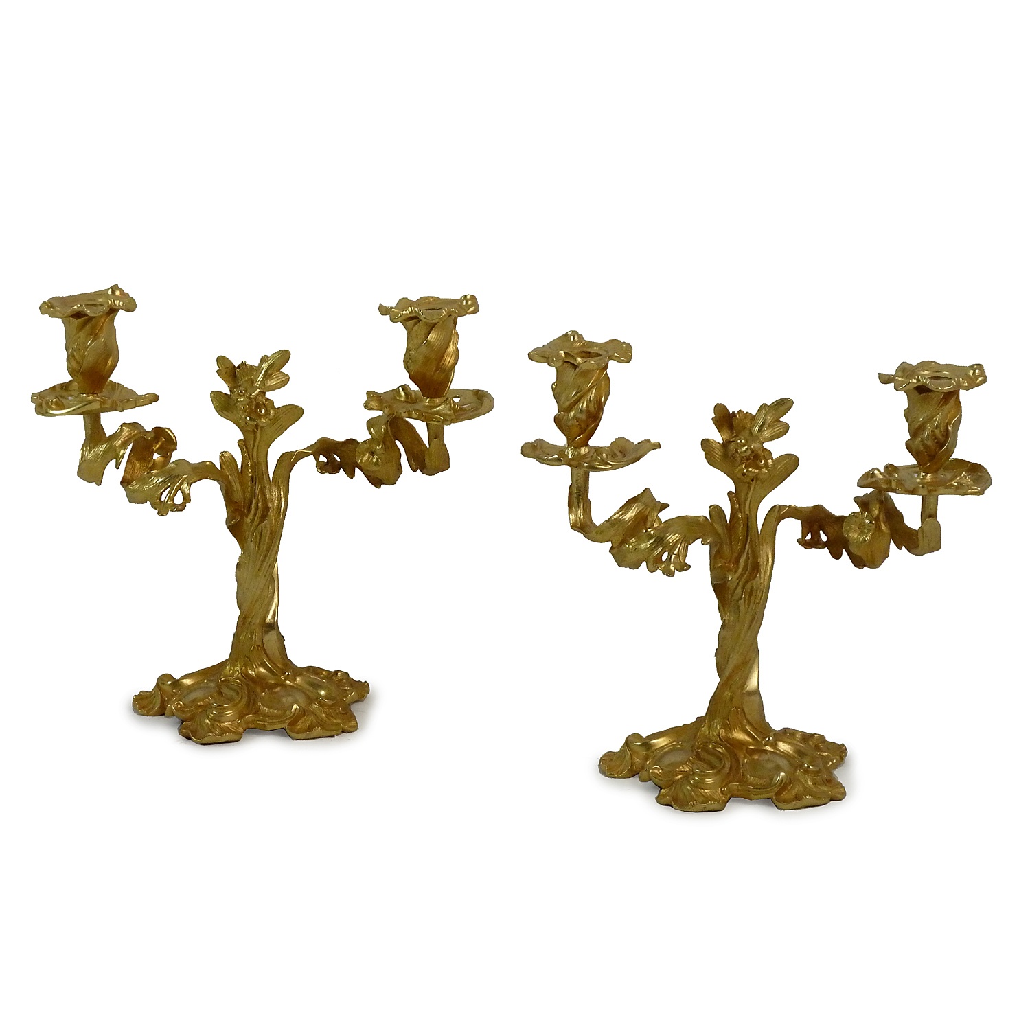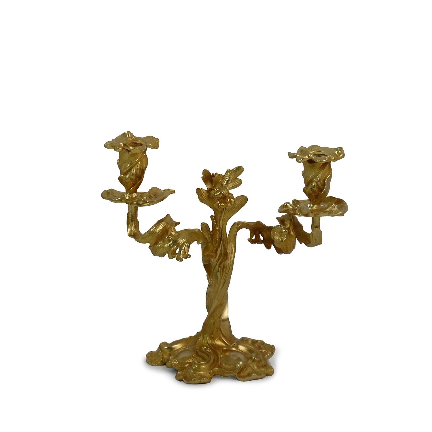 LOUIS XV ORMOLU CANDELABRA TWO BRANCH 27 CM HIGH 29 CM WIDE (X2)