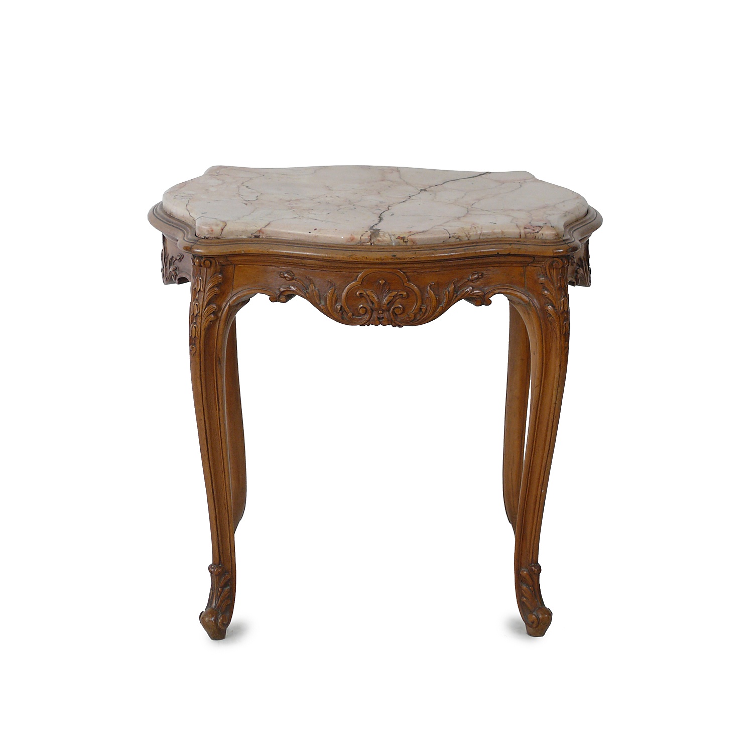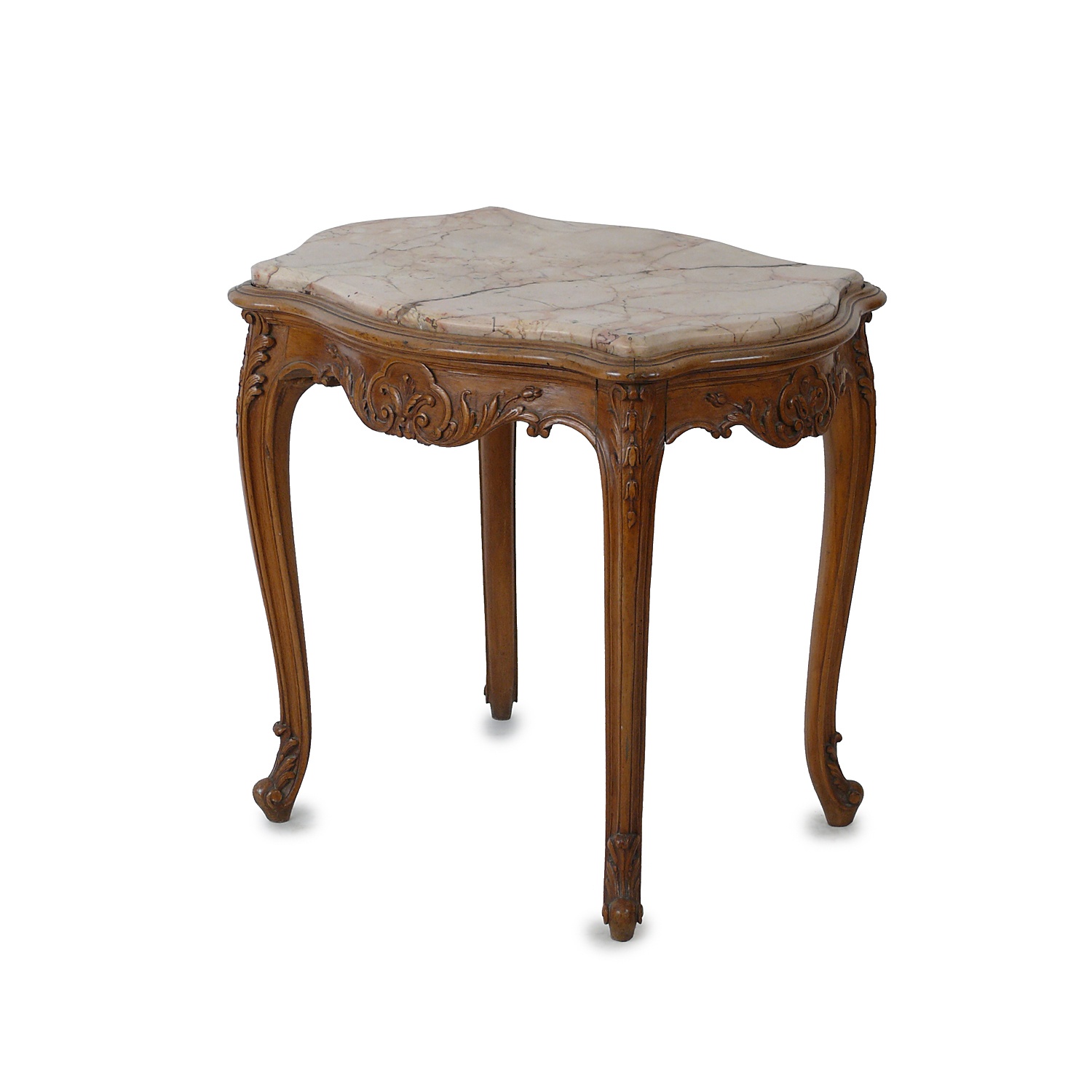 LOUIS XV STYLE LOW OCCASIONAL TABLE FRUITWOOD WITH A YELLOW BENOU BRECCIA MARBLE TOP 59 CM HIGH 64 CM WIDE 50 CM DEEP