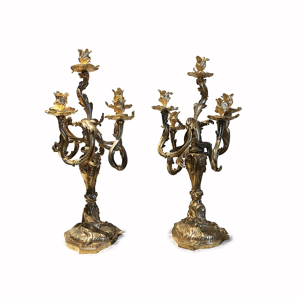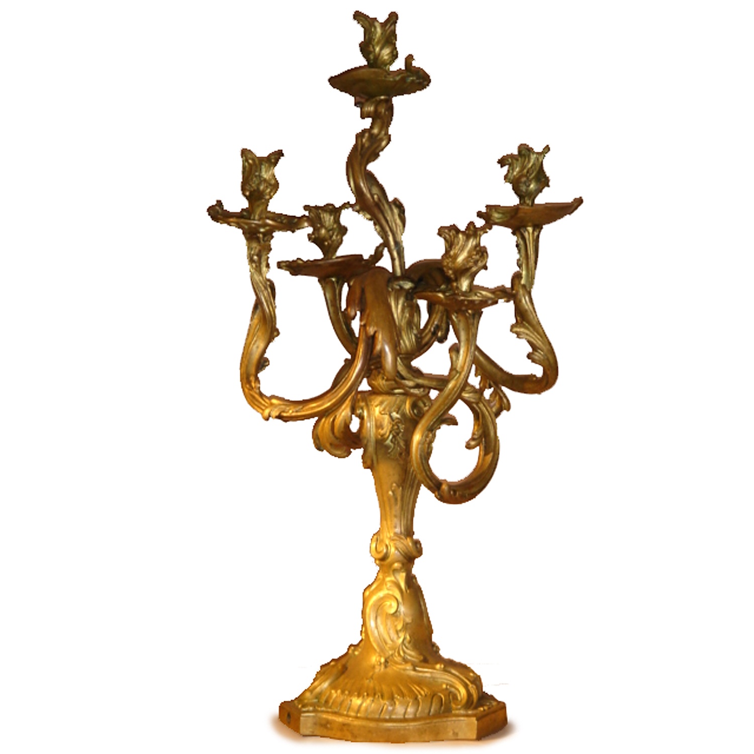 LOUIS XV STYLE ORNATE ORMOLU CANDELABRA FIVE LIGHT 64 CM HIGH 34 CM WIDE (X2)