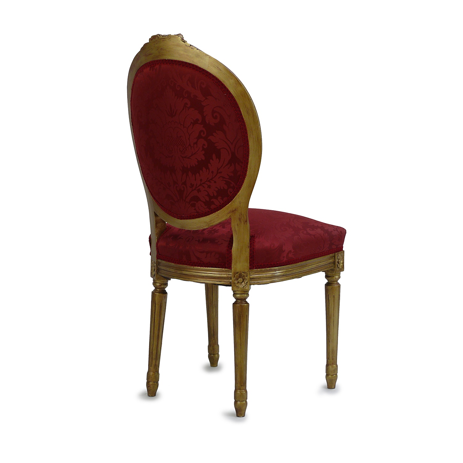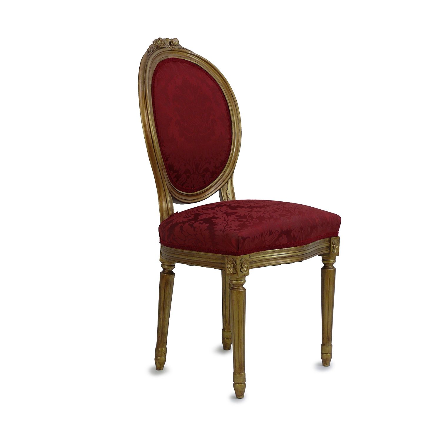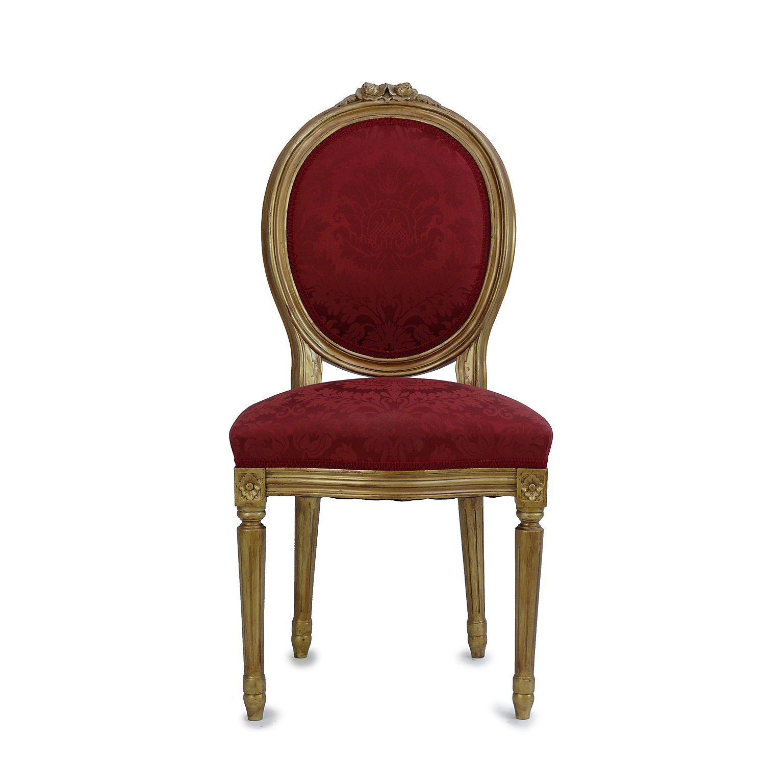 LOUIS XV STYLE SINGLE CHAIR BANQUETING TYPE CARVED AND GILT WITH RED DAMASK UPHOLSTERY 104 CM HIGH 53 CM WIDE (X30)