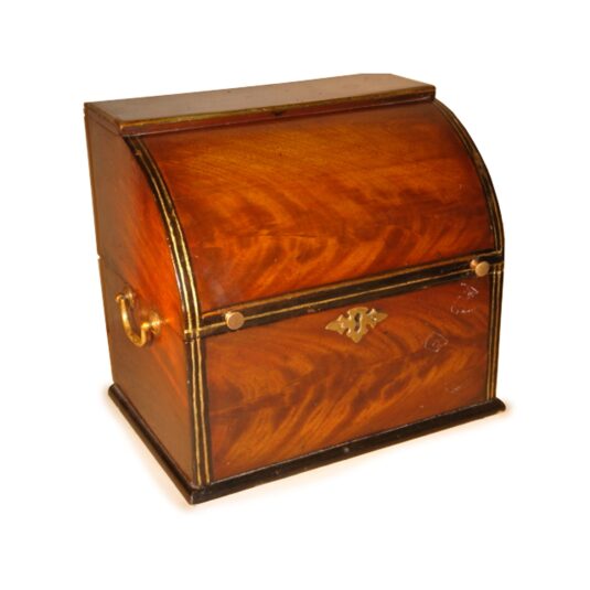 LOUIS XVI SLOPE FRONT TANTALUS BOX EBONY AND BRASS INLAID BANDING ( 6 SECTION INTERIOR ) 28 CM HIGH 29 CM WIDE 19 CM DEEP